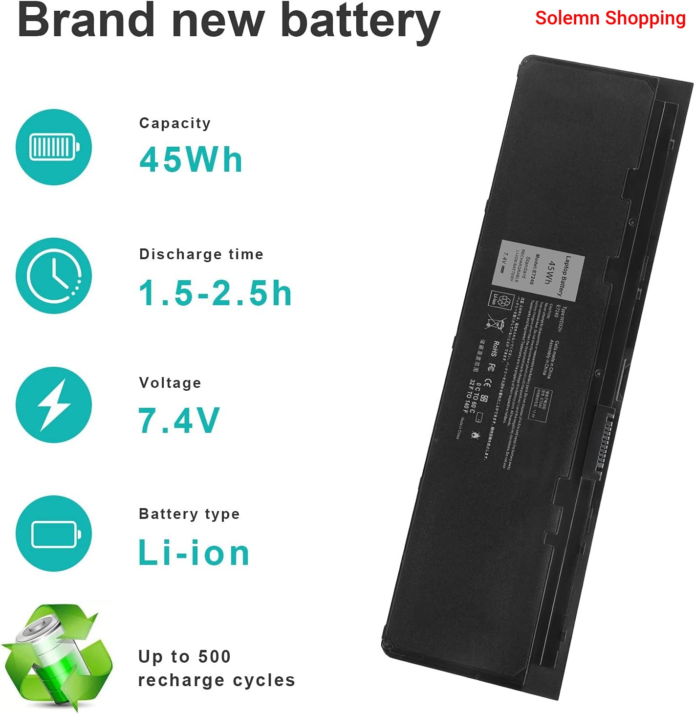 Upgrade your laptop power with this Replacement Battery for Dell Latitude E7240 and E7250 Series. Designed for durability and performance, this battery ensures long hours of uninterrupted use. It’s made with high-quality Li-ion cells to deliver stable power, fast charging, and excellent battery life. Perfect for work, school, or travel.
